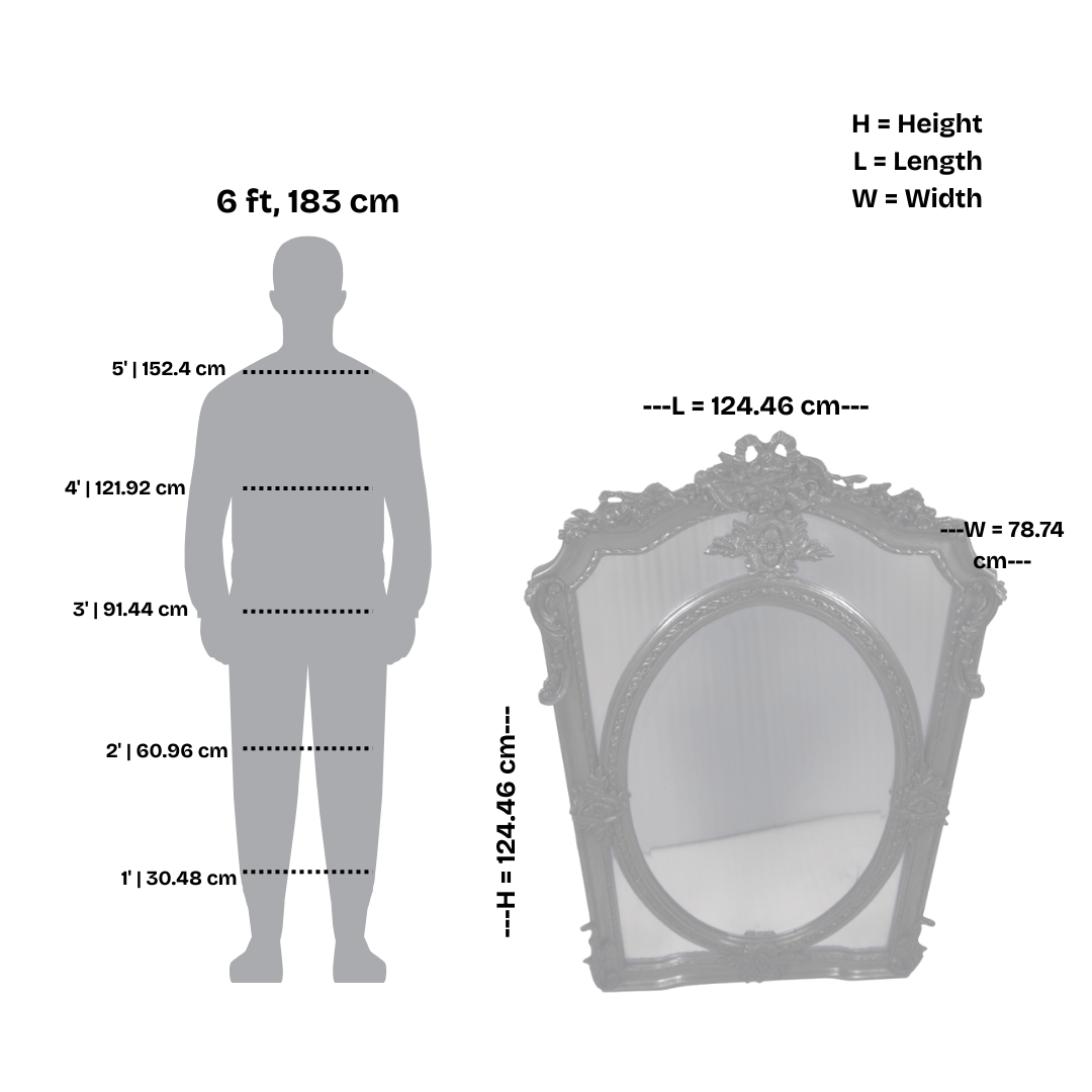 A captivating antique French mirror featuring a finely carved giltwood frame with an ornate Rococo influence. The centerpiece is an elegant oval beveled mirror encased within a larger rectangular mirrored surround, subtly aged to enhance its vintage charm. Embellished with intricate floral and ribbon motifs, this decorative piece embodies timeless sophistication and makes a stunning addition to any classic or Parisian-inspired interior. A beautiful testament to 19th-century French decorative arts.
