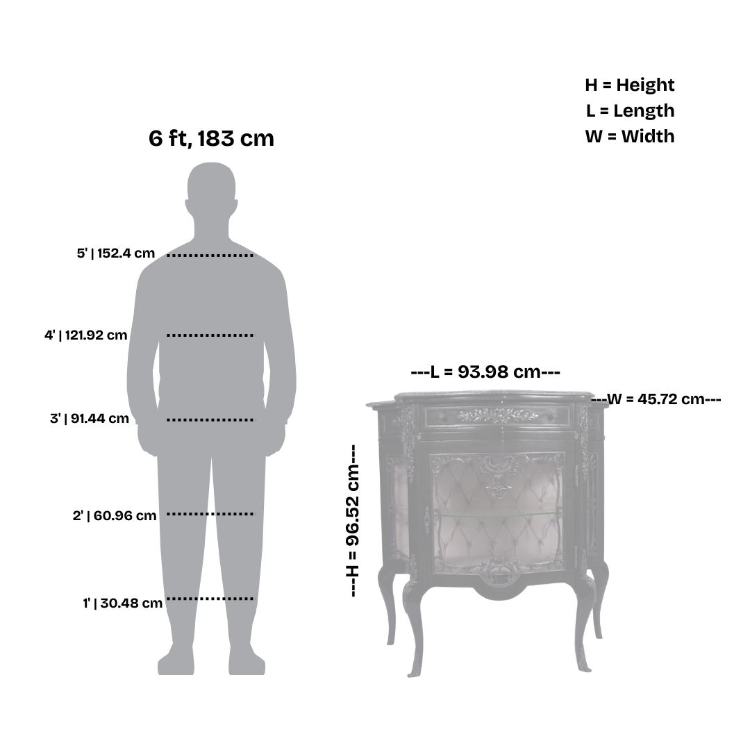 This exquisite Louis XV style vitrine cabinet showcases fine French craftsmanship, featuring a richly grained wood body adorned with ornate gilt bronze mounts. The marble top adds a luxurious touch, while the two glass-paneled doors with intricate ormolu detailing reveal a mirrored and shelved interior, perfect for displaying cherished collectibles. Elegantly curved legs and a refined silhouette complete its sophisticated appeal, making it an ideal statement piece for classic and traditional.