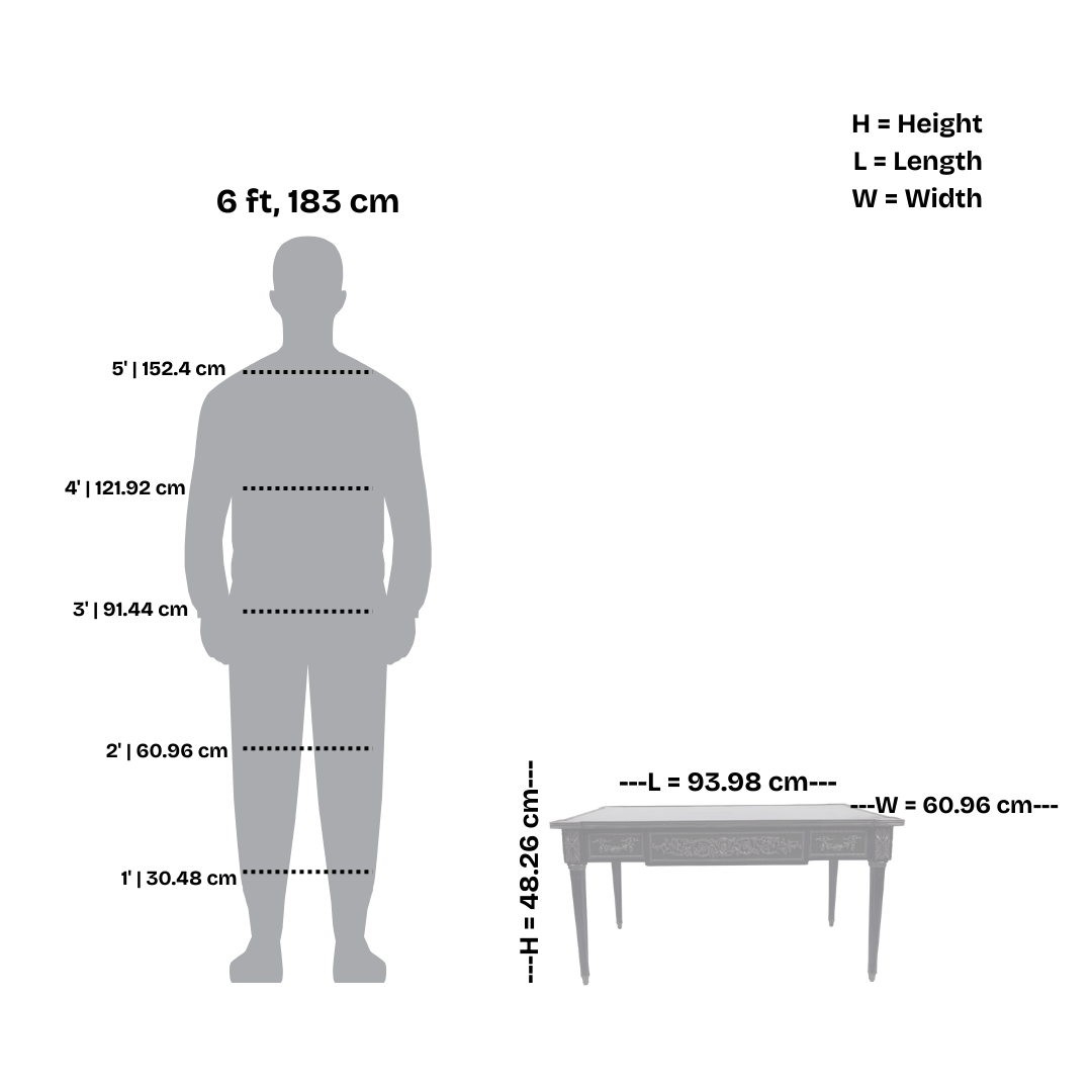 This distinguished Louis XVI style coffee table features a beautifully polished parquetry top, crafted with precision from fine mahogany veneers. The table is richly accented with detailed gilt bronze ormolu mounts, including floral motifs and classical embellishments that frame the sides and legs. Tapered legs with gold accents provide a refined and balanced silhouette. Ideal as a centerpiece for a living room or sophisticated lounge, this table embodies classical French elegance and Craftsmanship