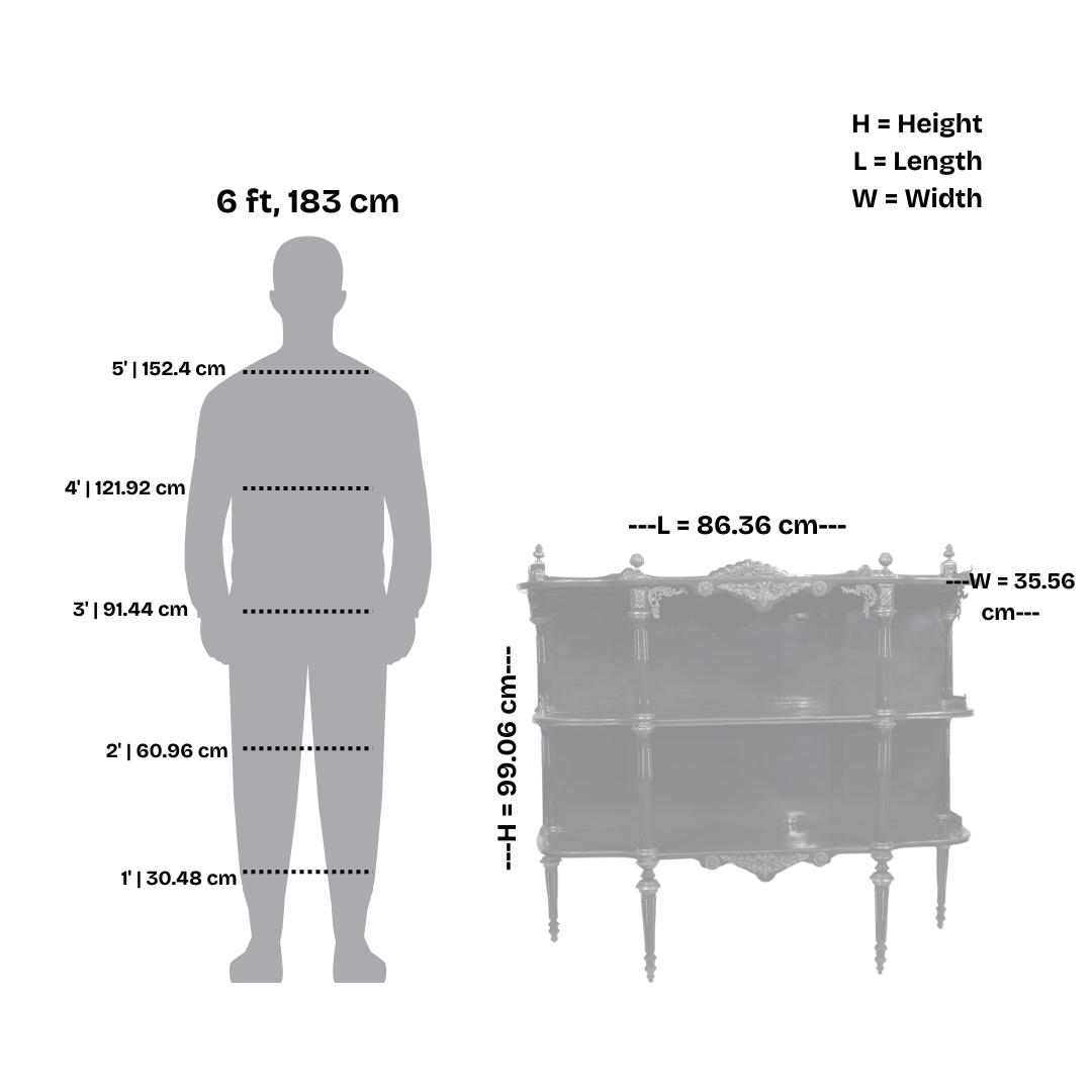 This refined Louis XVI style étagère is a rare and captivating piece that combines elegance, utility, and classic French artistry. Crafted from sumptuous mahogany with a lustrous finish, the piece features three gracefully curved tiers supported by fluted columns adorned with finely detailed gilt bronze mounts. Each shelf is framed with ormolu accents that lend a touch of regality and visual opulence. Crowning the piece is an ornate pediment showcasing an integrated classical-style clock, flanked by decorative finials and garlands, which enhances the étagère’s stately presence. The shaped tiers offer both decorative charm and practical display space, making it ideal for showcasing collectibles, porcelain, or fine objects d'art. Whether placed in a grand hallway, drawing room, or luxury office, this étagère stands as a statement of timeless sophistication and artisan craftsmanship.